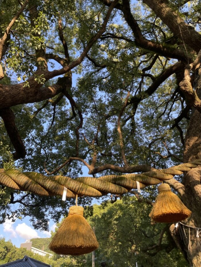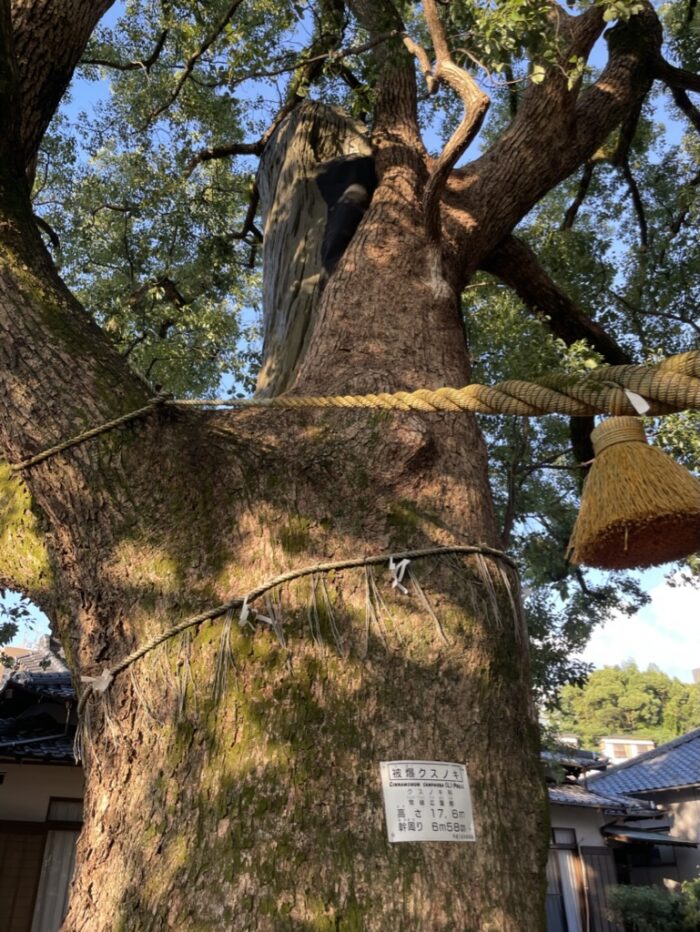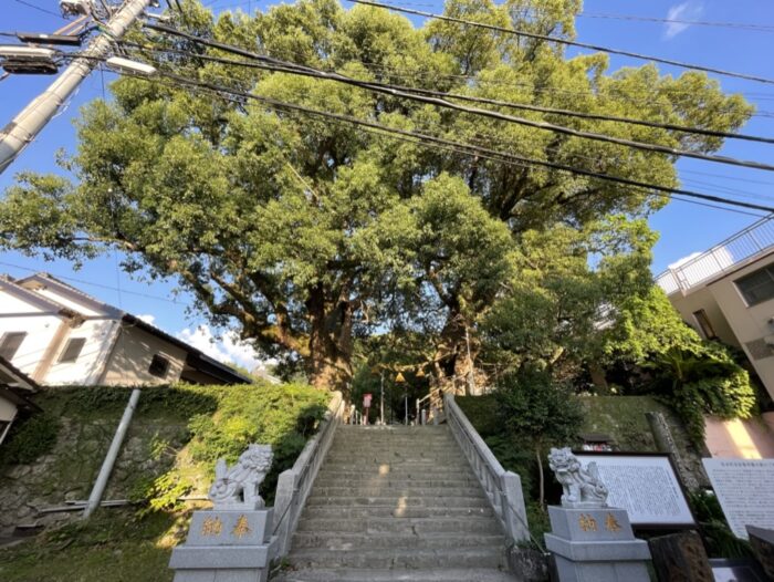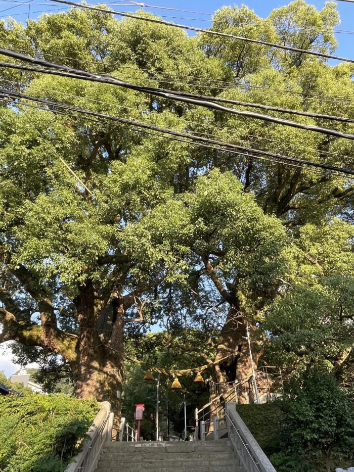 鳥居の先のお宮に茂っているのは、大きなクスノキ。