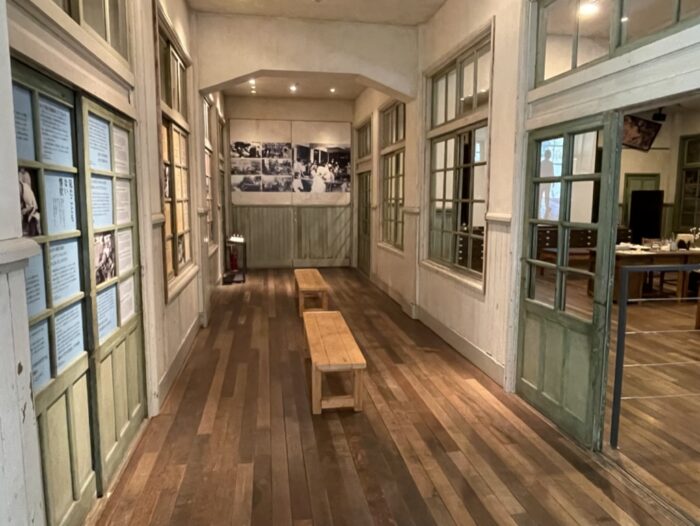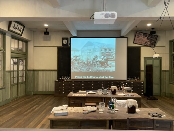 建物一階に小学校の様子が再現されており、映像では人々のリアルな思いを知ることができます。