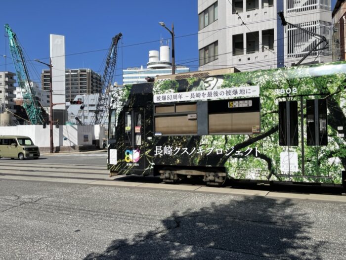 通りには、クスノキプロジェクトの路面電車が走っていました。
