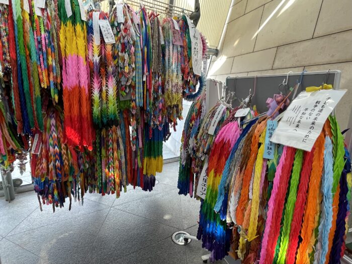 資料館の出入り口には、千羽鶴がありました。