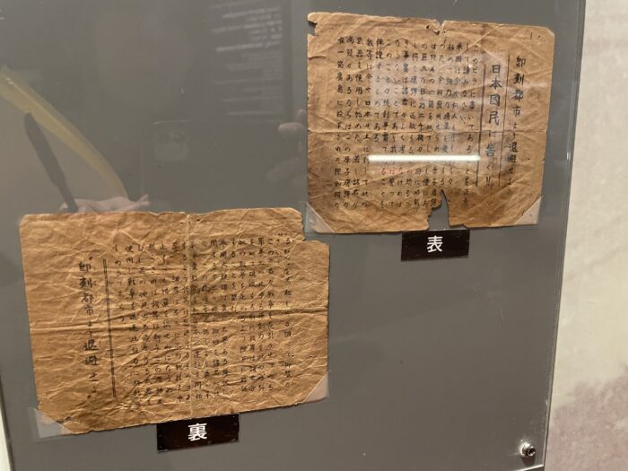 退避呼びかけなどが書かれていますが、「ビラが実際に撒かれたのは原爆投下の後」だったとのこと。