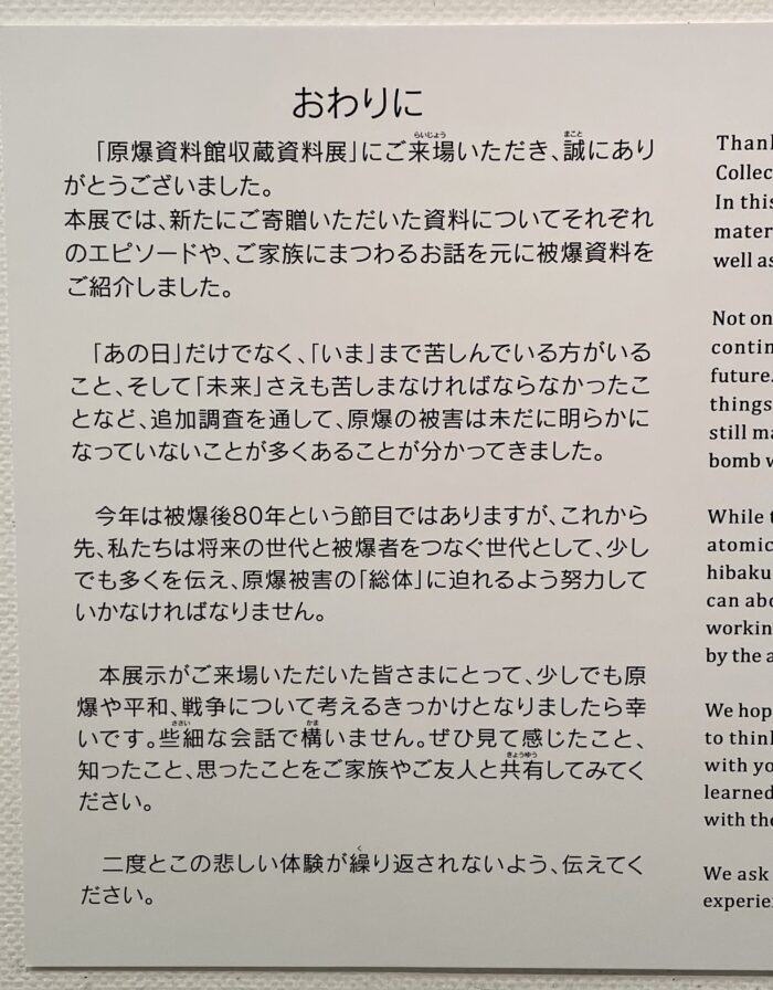 原爆資料館はモノの記録資料が多いですが、こちらは声や感情など、形にならない記憶が主です。
