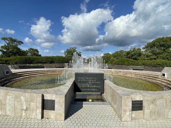 その痛ましい霊に水を捧げて、めい福を祈り、あわせて世界恒久平和を祈念するため、核兵器禁止平和建設国民会議と長崎市は、全国からの浄財を基として、ここに「平和の泉」を建設しました。長崎市長